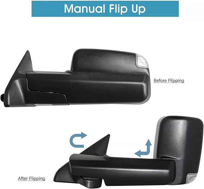 - Color : Ram 1500 Turn Signal Tow Mirrors Black