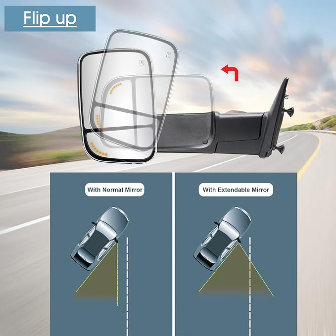 - Matters Needing Attention: These Trailer Mirrors can only work on vehicles with these exact options, Please confirm the function of the product before placing an order, otherwise the towing mirror may not work. A professional installation is strongly recommended