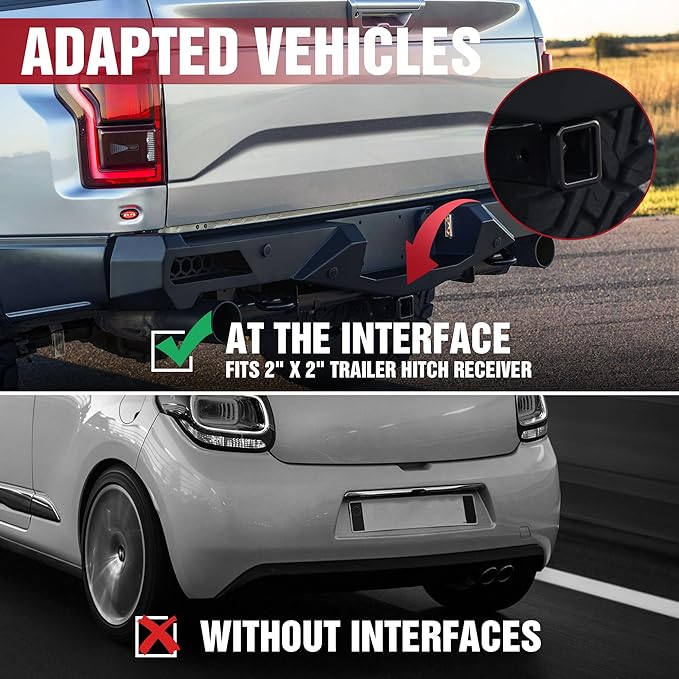 - 【Front or Rear Mounting】: This trailer hitch accessory can be mounted on the front or rear of your vehicle as long as a standard 2-inch receiver is properly installed