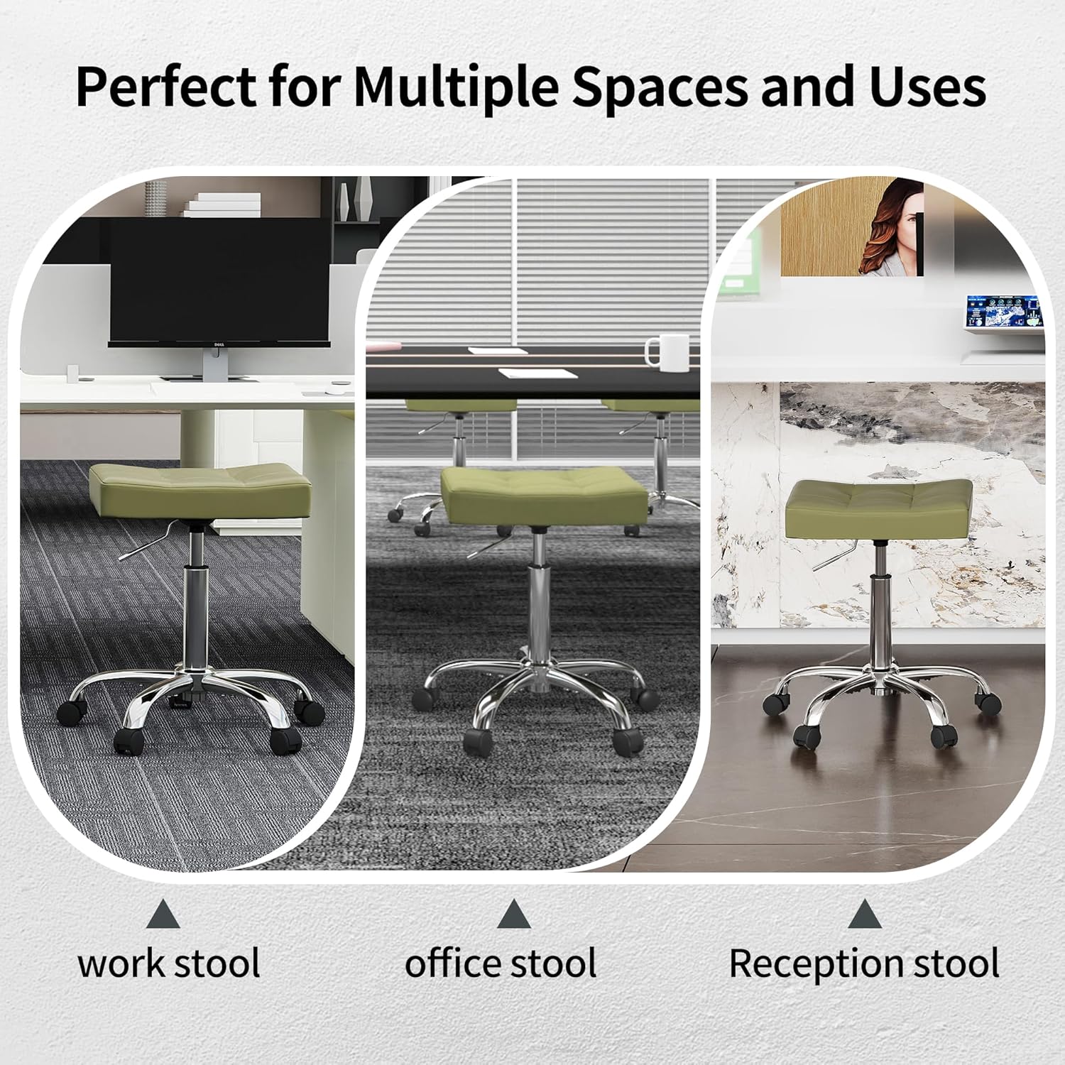 - Multi-Purpose Stool for Home and Work: This rolling stool features adjustable height to accommodate different tasks and users. Suitable for home use at vanities, desks, or kitchens, it offers easy mobility and fits various room styles. In professional settings such as offices, nail salons, barbershops, tattoo studios, beauty salons, medical facilities, or retail spaces, it provides stable seating and supports comfortable positioning during use