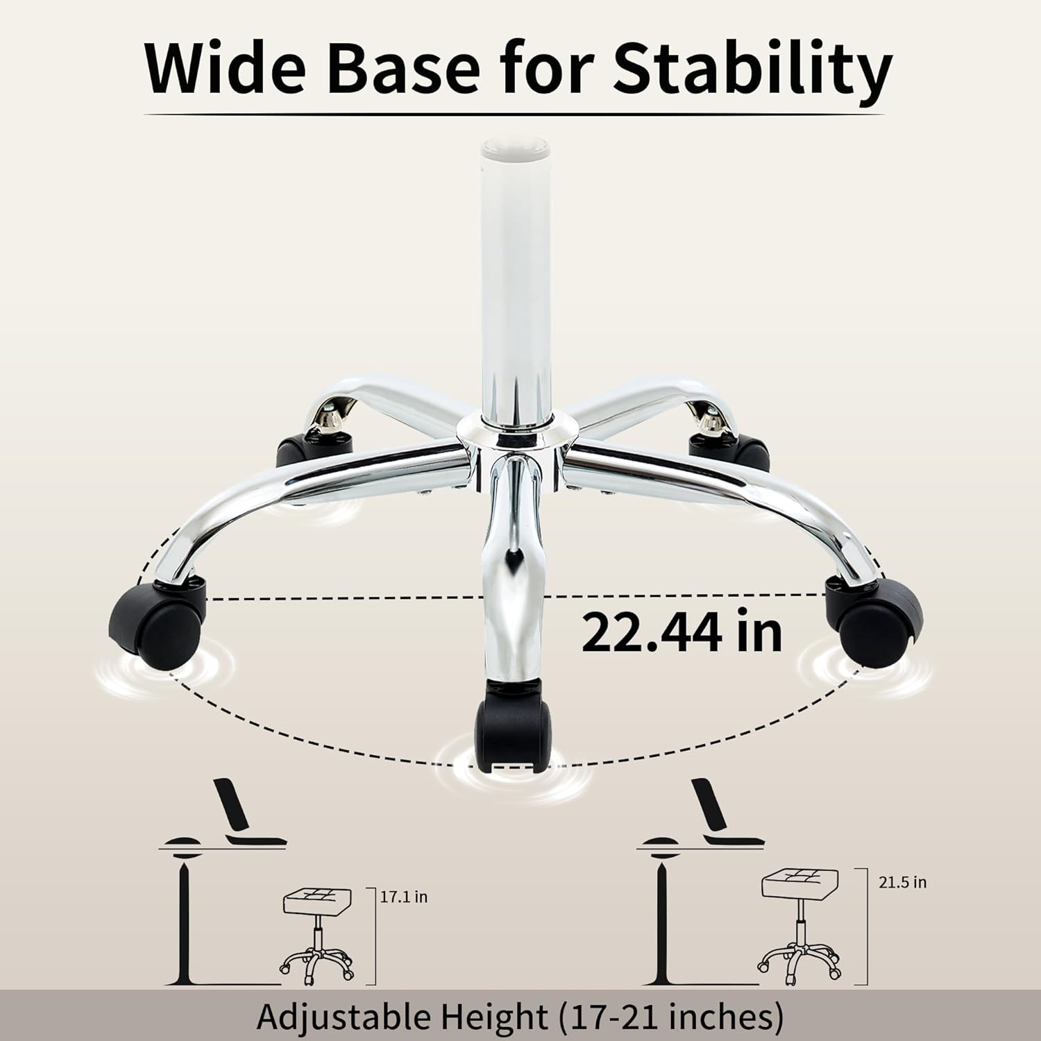 - Adjustable Height: Adjustable height range of 17 to 21 inches, this stool easily fits a variety of desks and workbench heights, ensuring comfort for users of different statures. Its versatility makes it ideal for use in nail salons, barbershops, and beauty salons