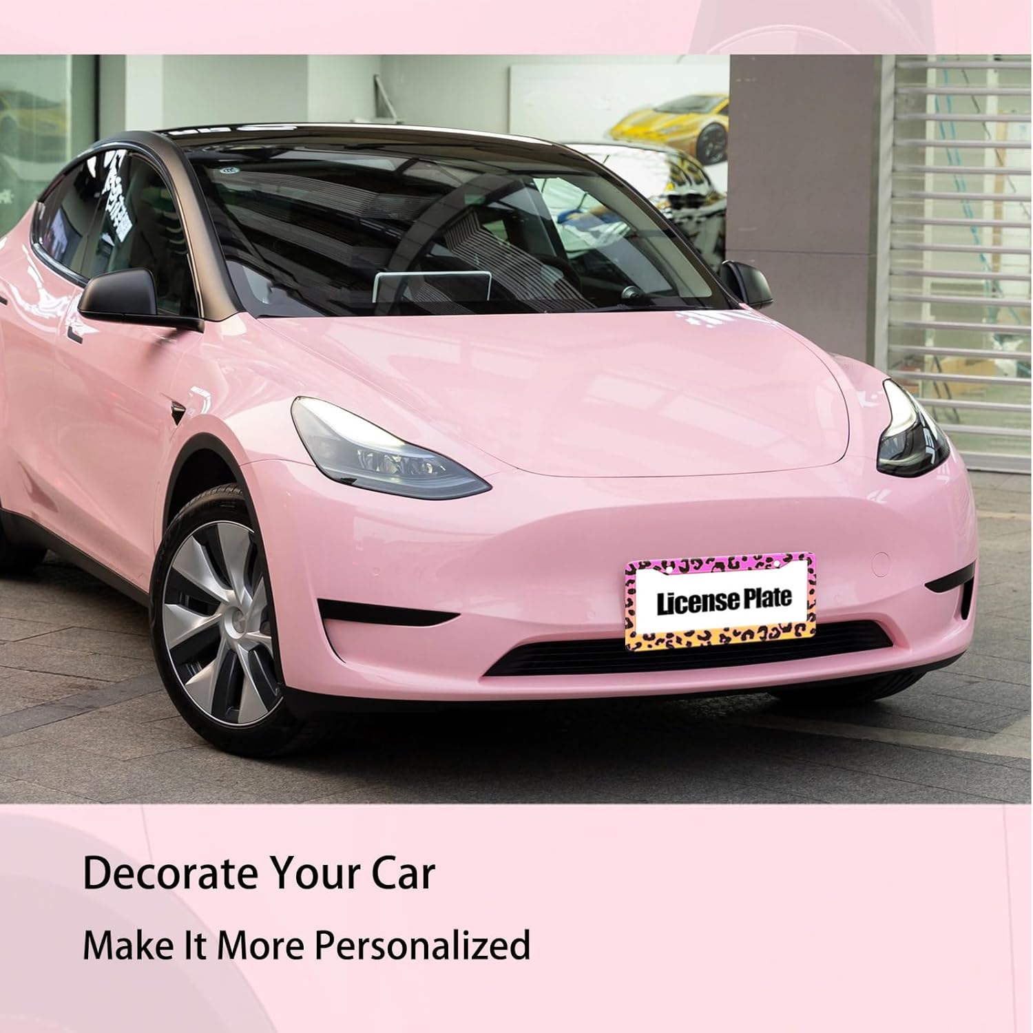 Gradient Color Leopard Print License Plate Frame Cheetah Print Tags Frames Holder Covers Metal Aluminum Rustproof Cute Car Accessories for Us Canada Standard Women Men 2 Holes with Screw Caps