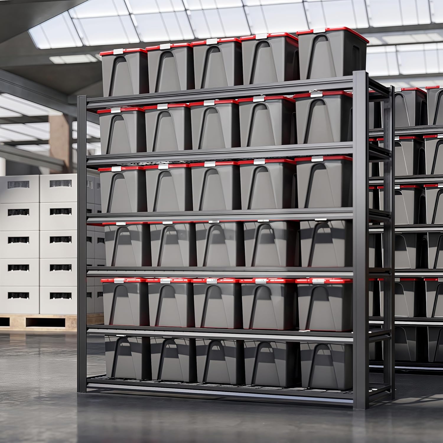 - ă4200LBS Capacity Heavy Duty Garage ShelvesăLI JIU HOME's heavy duty garage shelving unit has thickened double metal legs. Made of high-quality metal, each solid thickened metal shelving with 9 big ribs beneath can hold up to 700 lbs, with a total bearing capacity of 4200 lbs, which makes industrial garage shelves heavy duty more stable and solid than normal metal shelves for storage and more stuff can be stored