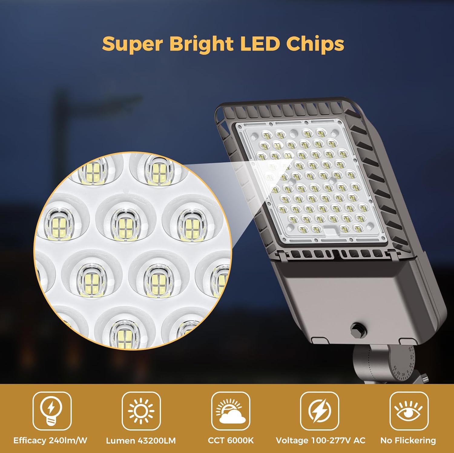 - Ideal for various outdoor settings such as parking lots, driveways, sidewalks, roads, stadiums, gardens, warehouses, and more, this led parking lot light can be mounted on walls, square poles, or round poles.