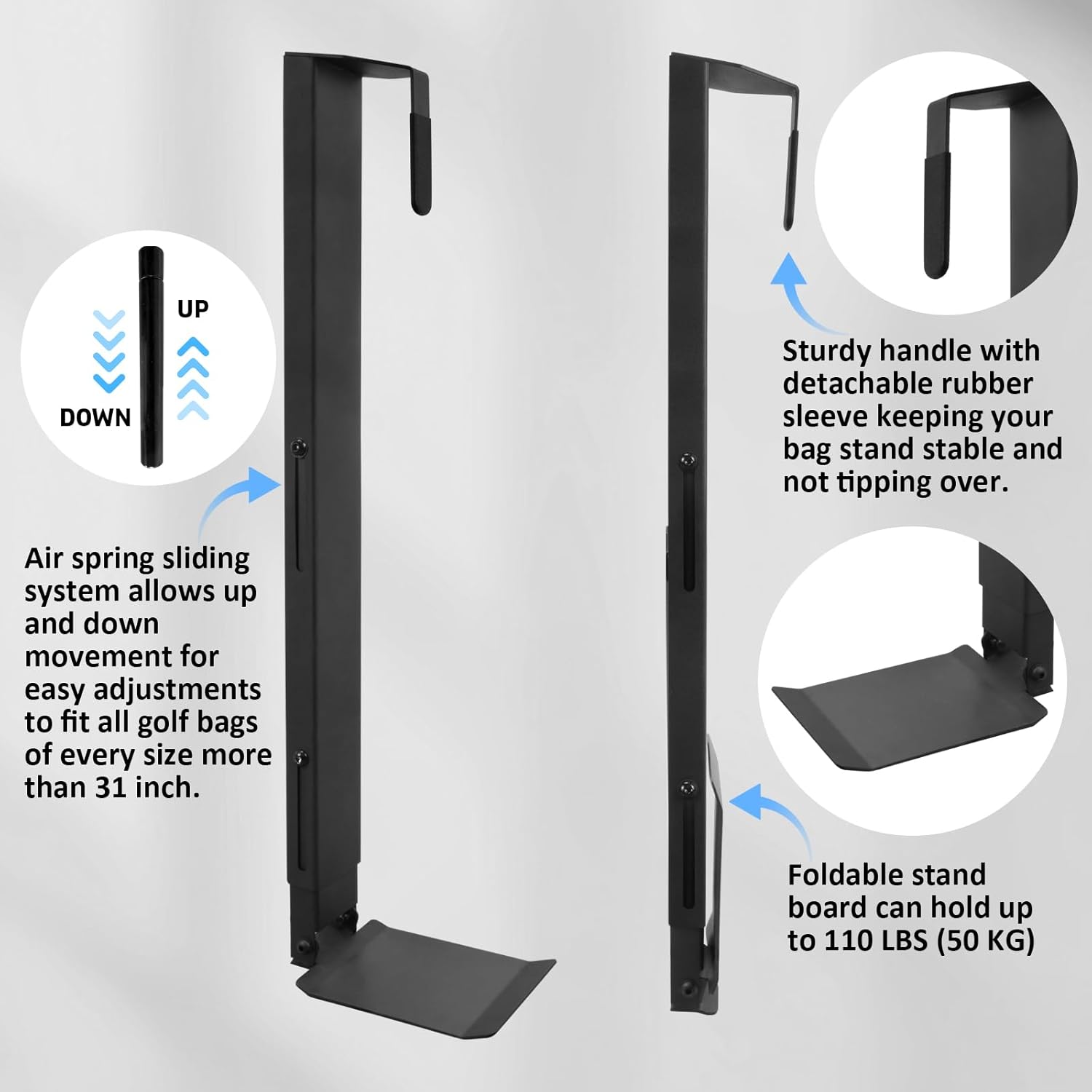 - Air Spring Sliding System Golf Bag Organizer Rack: Foldable stand board wall mount golf bag storage holder stand can hold up to 110 lbs, stability wall mount golf bag stand for storage 1 bag
