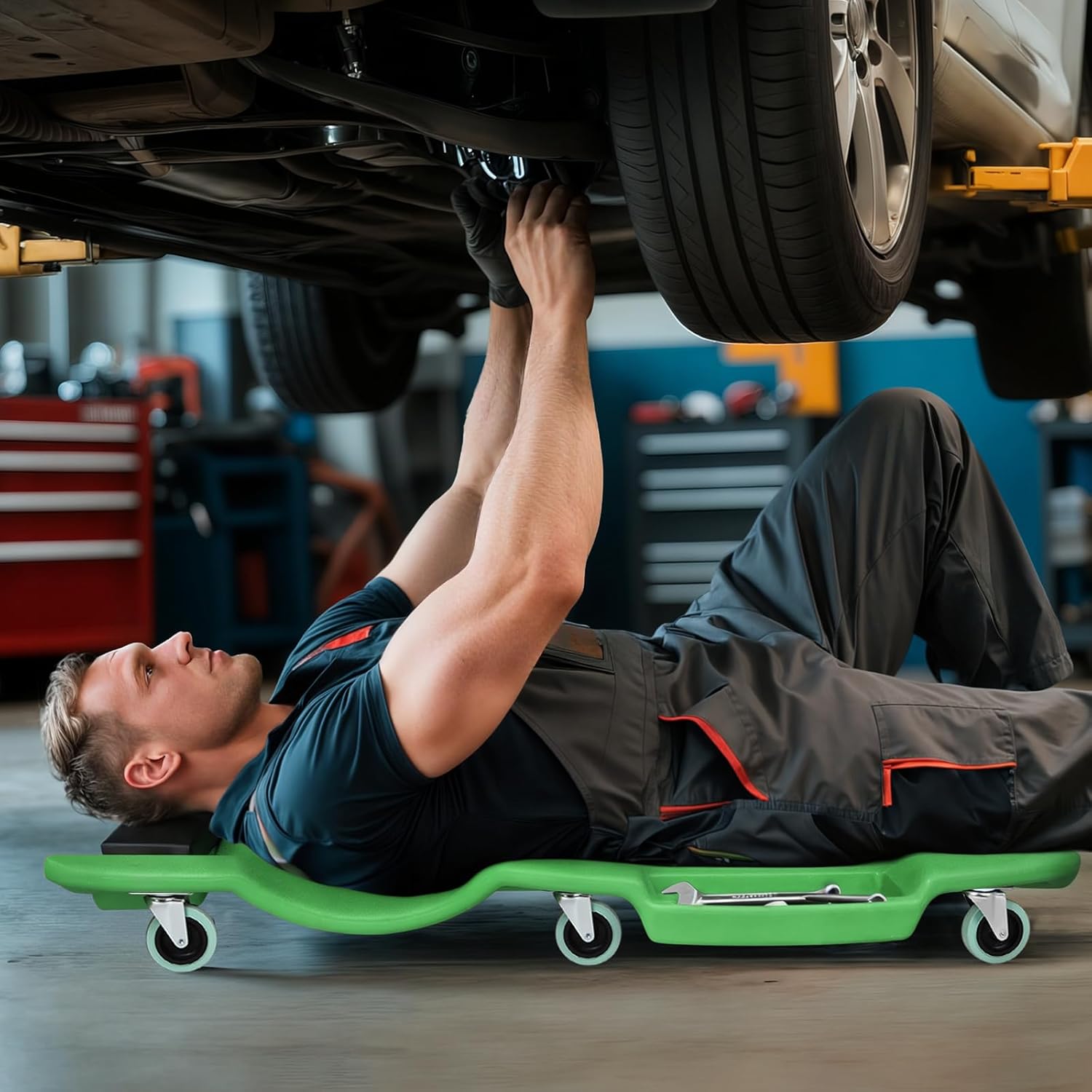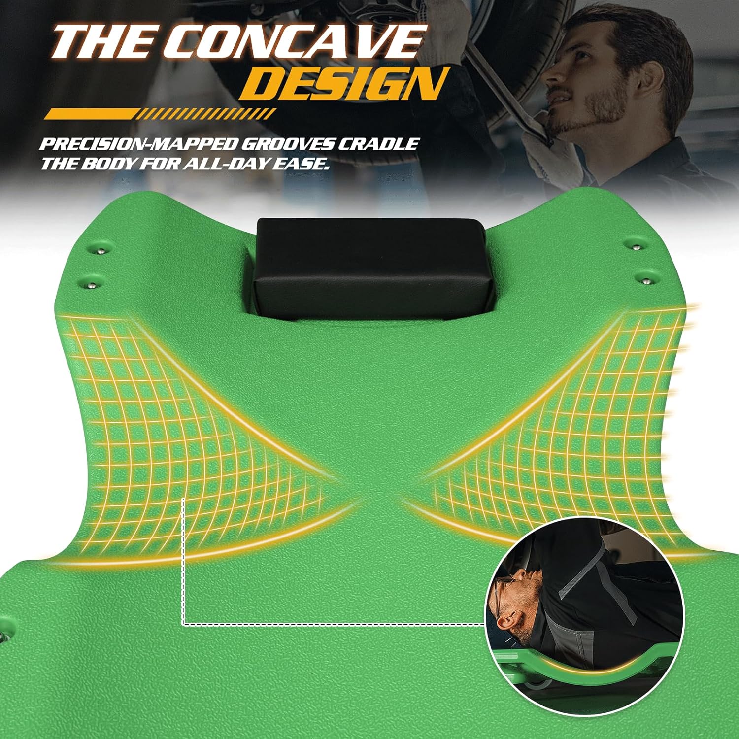 Magshion Mechanic Creeper with Padded Headrest & Tool Trays – 440 lbs Capacity, Rolling Garage Creeper with 6 Swivel Wheels, Lightweight & Portable Under Car Creeper for Auto Repair (Green)
