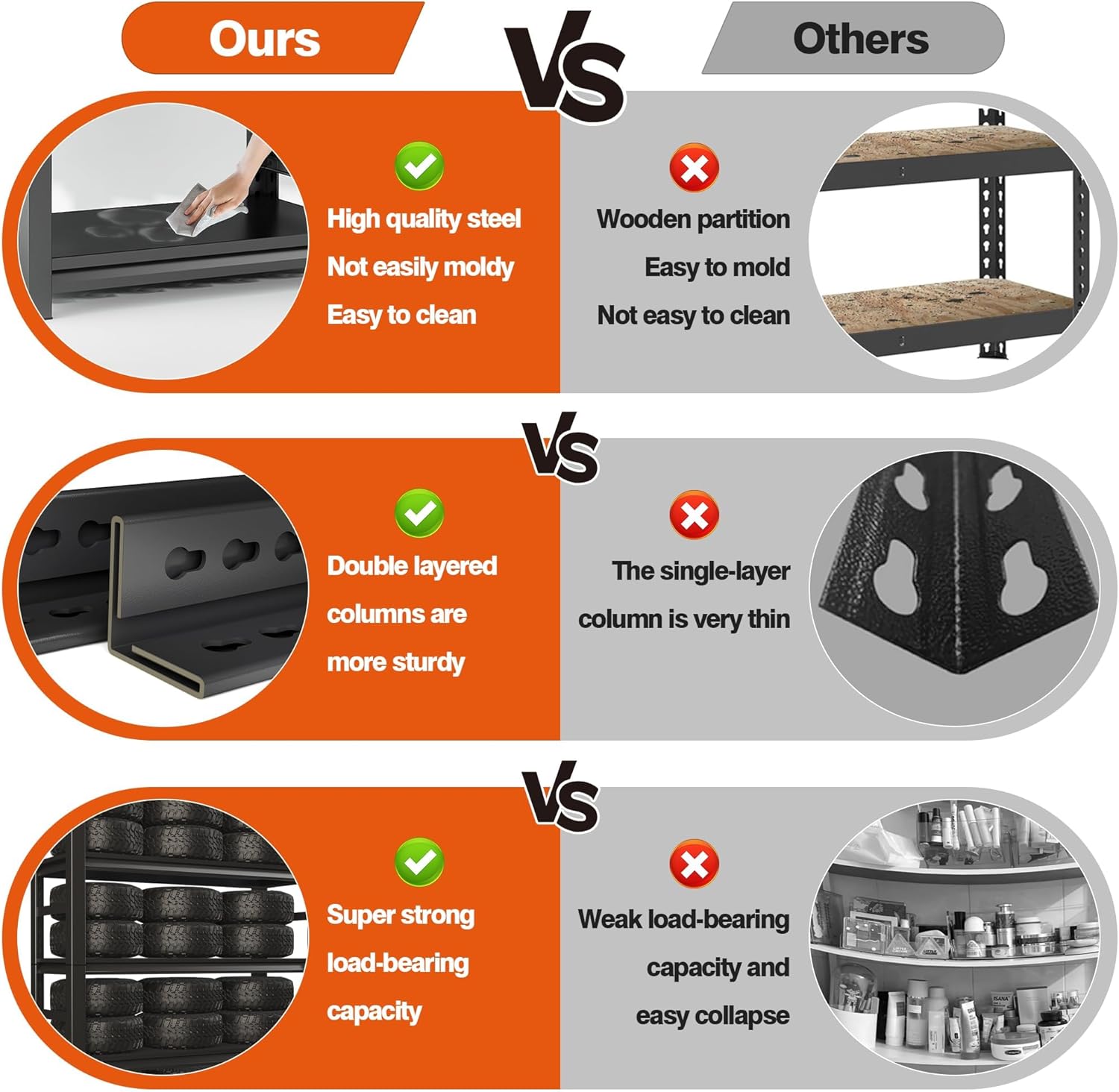 - ăDouble-Thick Uprights for Industrial Loadsă Featuring double-thick uprights, this garage shelving unit delivers enhanced structural integrity. Perfect for storage shelves for garage and industrial shelves, supporting extreme weights safely.