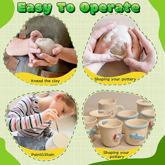 - Perfect Gift for Young Artists:Looking for a unique and engaging gift? The kids ceramic pottery wheel kit is an excellent choice. It offers hours of entertainment and learning, making it suitable for birthdays,easter stuffers,back to school gifts,Thankdsgiving,Christmas, holidays, or any special occasion. Encourage the young artists in your life to explore the world of pottery with this all-in-one kit.