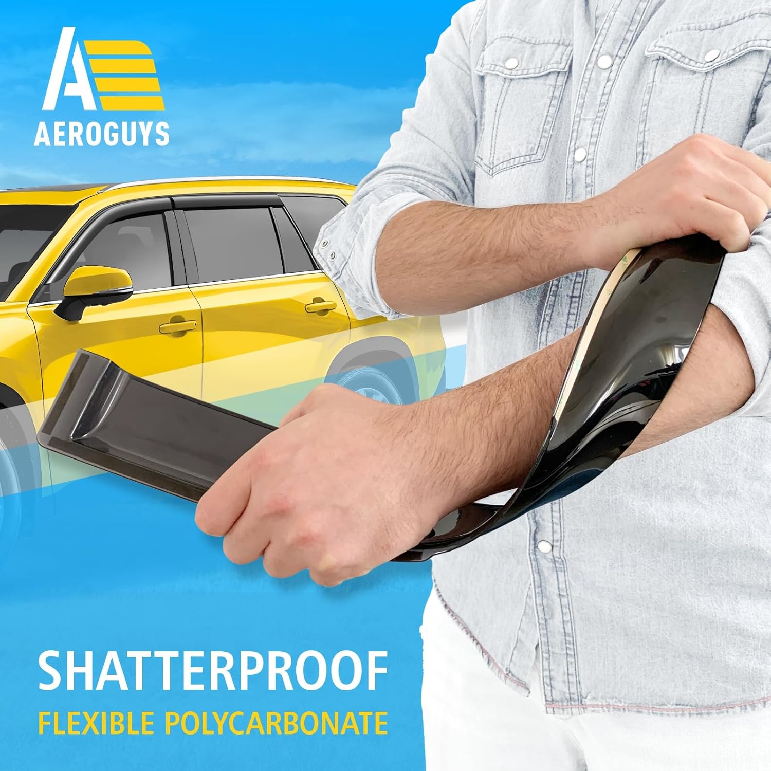 - Incredibly Durable AEROGUYS Auto Window Deflectors β They are made with strong and tough polycarbonate which is clear and scratch-resistant. They also provide UV protection making your ride more comfortable under all weather conditions.