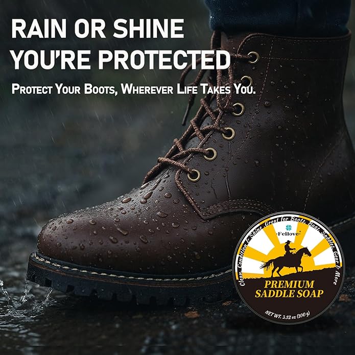 - DEEP CLEAN & MAINTAIN: Restore and refresh your leather with the Feilove 3-in-1 saddle soap kit—complete with saddle soap, a horsehair brush, and a soft cloth. It deeply cleans while helping maintain leather's natural flexibility and softness. Ideal for boots, saddles, bags, and car interiors. After use, it forms a light barrier that helps repel moisture and reduce everyday wear.