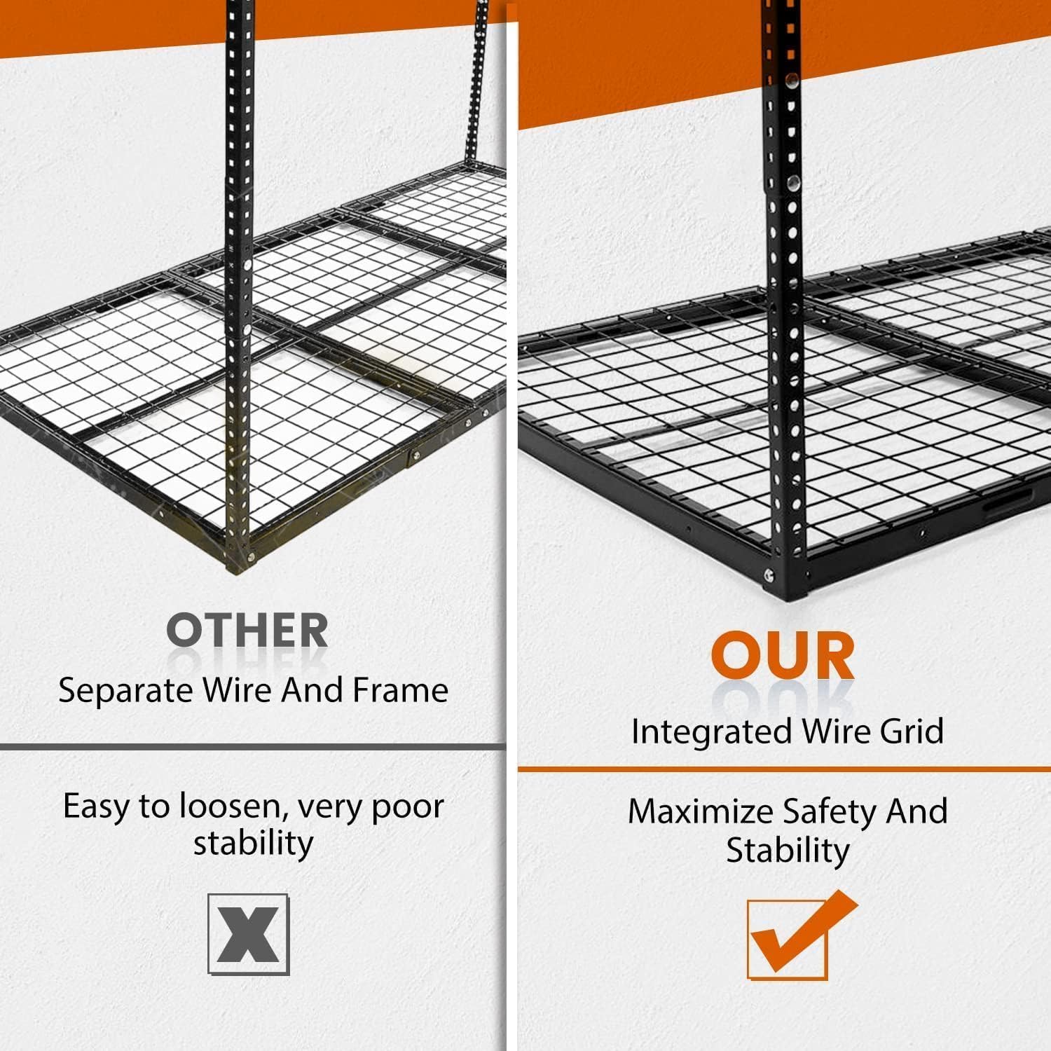 - Design: Designed to help make use of wasted space in the garage. The grid design is more stable and sturdy compared to other products. Heavy duty steel construction can hold up to 450lbs