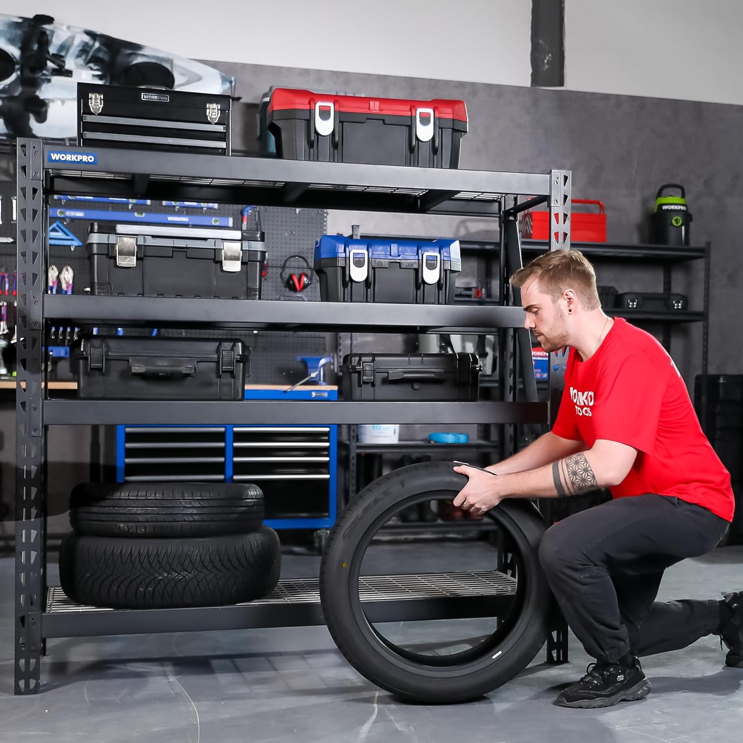- 8000LBS Heavy-Duty Capacity – Each shelf holds up to 2,000 lbs, total 8,000 lbs. Welded steel and reinforced beams make it perfect for heavy tools, equipment, and storage items.