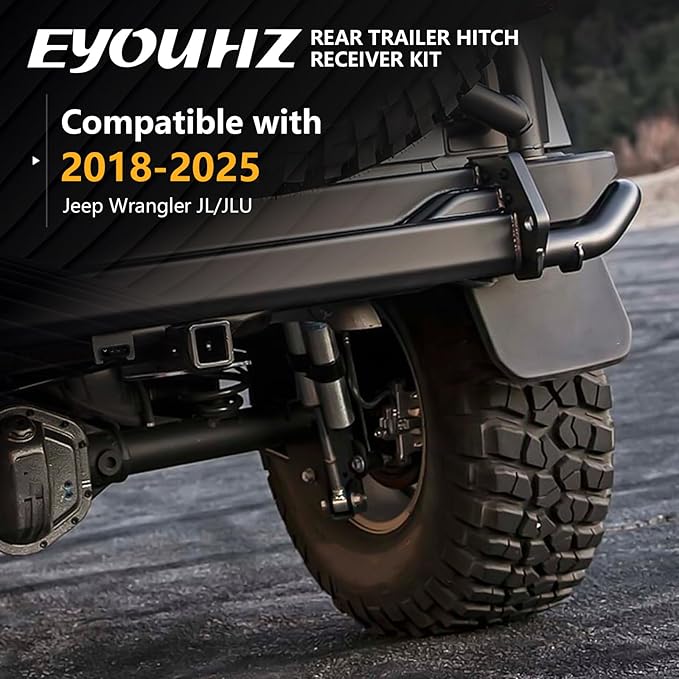 - 【Perfect Fit】- This rear trailer hitch is designed specifically for 2018 2019 2020 2021 2022 2023 2024 Jeep Wrangler JL models (Includes 4XE models). It features a standard 2-inch square receiver, guaranteeing a perfect fit for your vehicle and delivering reliable towing performance.