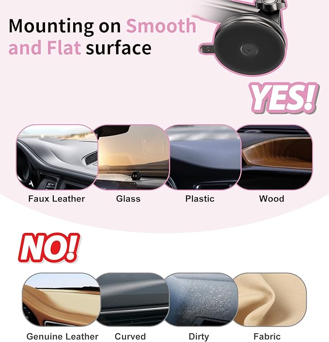 - 【Washable Rock-Solid Suction Cup】 The base for magsafe car charger mount boasts a strong suction cup with heat-resistant material. Tested rigorously, the suction cup securely holds over 20 pounds without slipping. (REUSEABLE after rinsing and air-drying.) And it's washable base so that you can clean it up and install it at another place if you want.