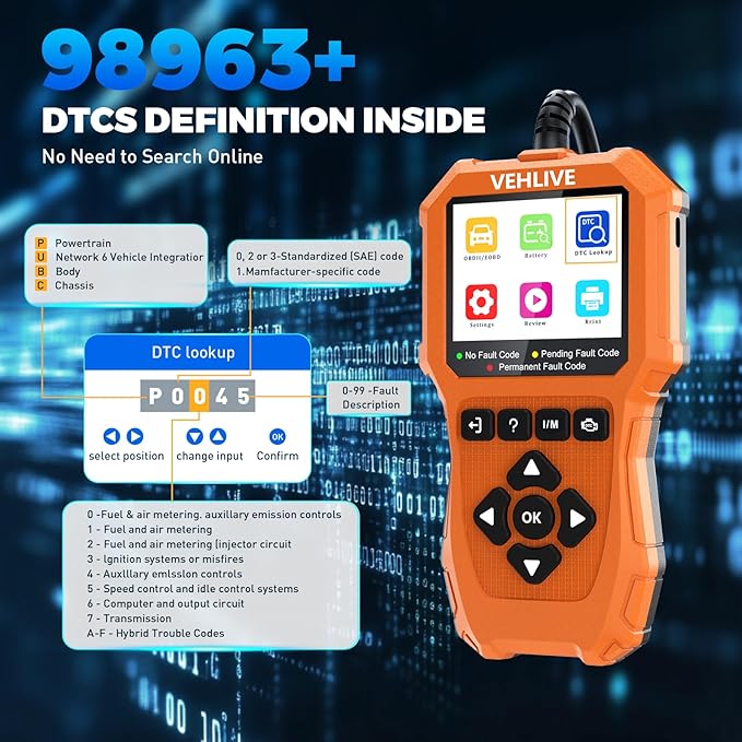 - 98,963+ DTC Lookups: car code reader has 98,963 built-in DTCs, compared to the 3,000-10,000 typically found in older OBD2 Scanner Diagnostic Tool, this obd scanner diagnostic scanner for all vehicles the DTC library covers tens of thousands of detailed trouble code definitions to quickly identify causes and potential problems, so you can instantly recognize vehicle issues without having to search online. If you're considering replacing or upgrading your existing Check Engine Light Code Reader, this Enhanced fixd car Diagnostic Tool is for you