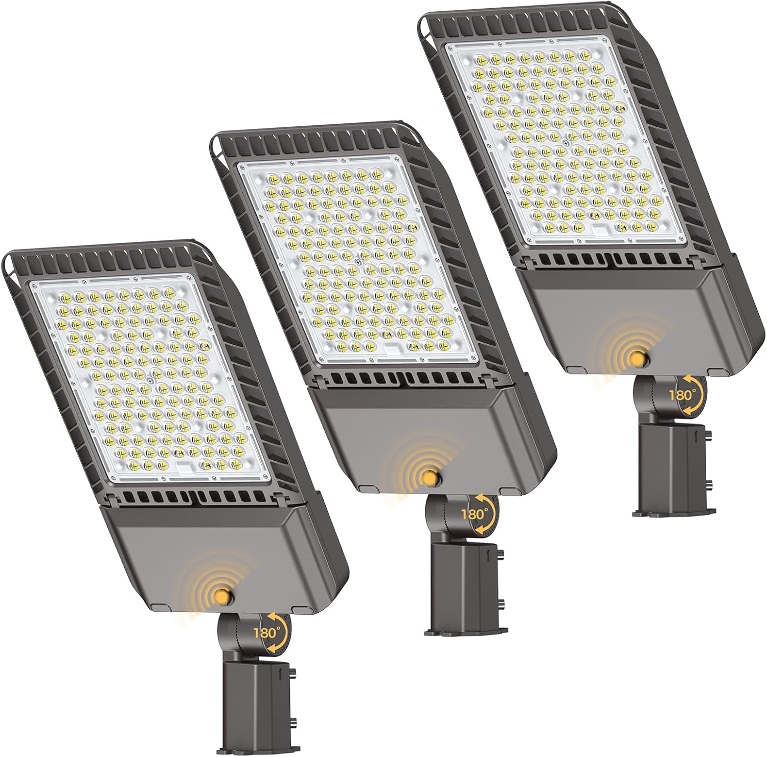 LED Parking Lot Lights 340W Commercial Oudoor Lighting Dusk to Dawn Photocell Street Lights 6000K IP65 100-277V for Yard Garage Warehouse 3 Pack with Allen Wrench