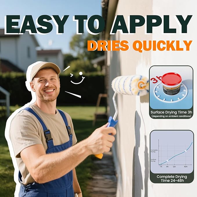 - High Waterproof Shield: Are you annoyed with walls or roofs from leaking? Fear not, a clear waterproof sealant here will form a strong waterproof coat for them. Its 80% high-acrylic formula effectively prevent from the rainwater by creating a seamless, flexible membrane after curing. Protect the exterior wall or roof from the water leaking. Staying transparent after cured, makes it matched the surfaces without altering their appearance, maintaining its original states.