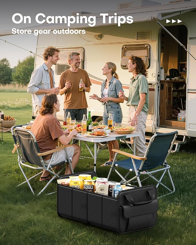 - VERSATILE EVERYDAY USE: Suitable for groceries, camping gear, sports equipment, or road trip essentials, this car organizer and storage solution adapts to multiple scenarios with ease and convenience. It works perfectly for shopping runs, outdoor adventures, family trips, or tailgating. In every situation, it keeps your trunk neat, accessible, and always ready for your next journey.