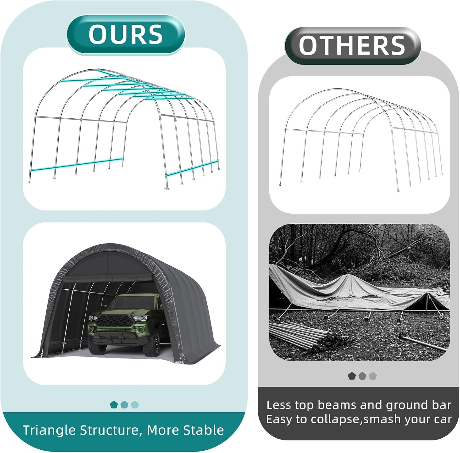 - 【Round Style Roof & Anti-Snow】: The 10 x 20 carport top is designed with a Round Style shape, which avoids standing water and snow and increases the service life of the car garage