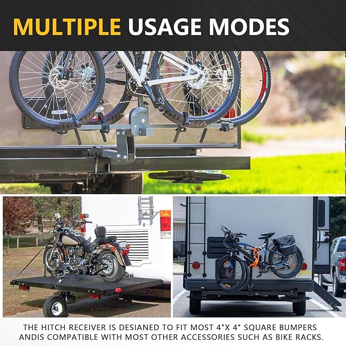 - 【Compatible】: Fits 4~4.5 inch Bolt-on square bumper, 2 inch standard receiving port, can bear up to 200 lbs tongue weight, ideal for carrying bike racks, cargo racks or other camping accessories.