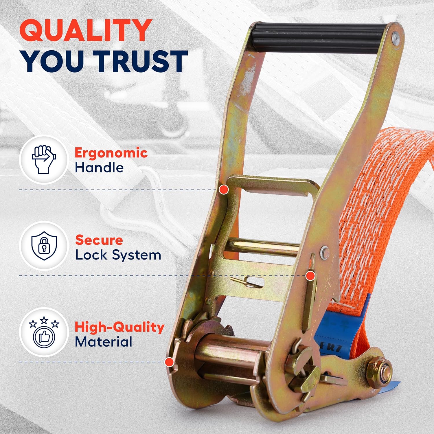 2 Inch x 20 Ft Heavy Duty Ratchet Straps - 6600 Lb Breaking Strength Tie Downs with Double J Hook for Trucks & Trailers