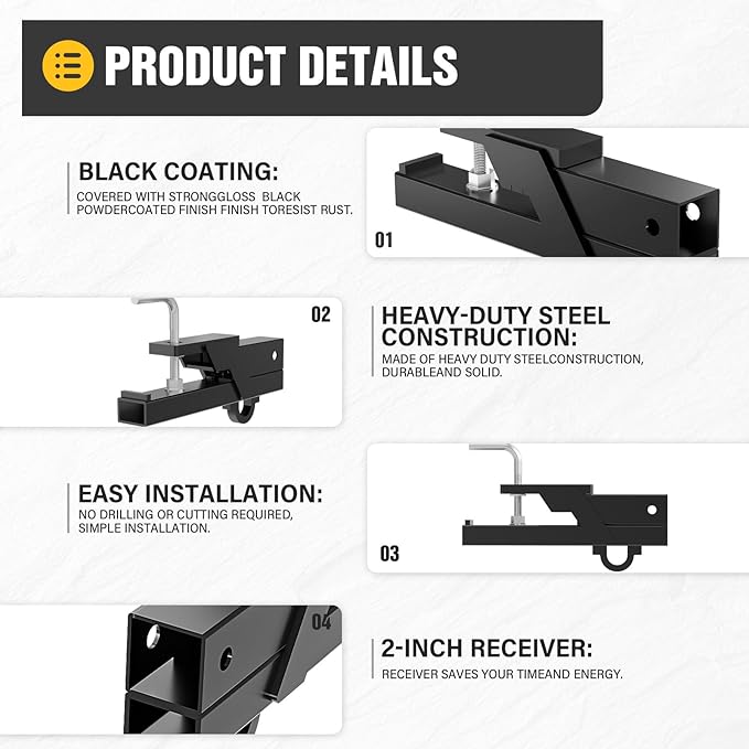- 【Widely Used】 Ideal for heavy-duty tasks in industrial, agricultural, and construction applications, this hitch offers ample towing capacity. It is versatile enough for various uses, including boats, RVs, trailers, and camping equipment.