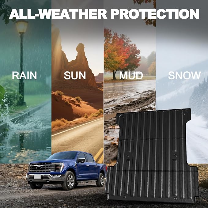 - All Weather Protection: Stain-resistant TPE defends F150 truck beds against rain, dirt, mud, snow, and extreme heat. Cleans instantly with water rinse and air dry