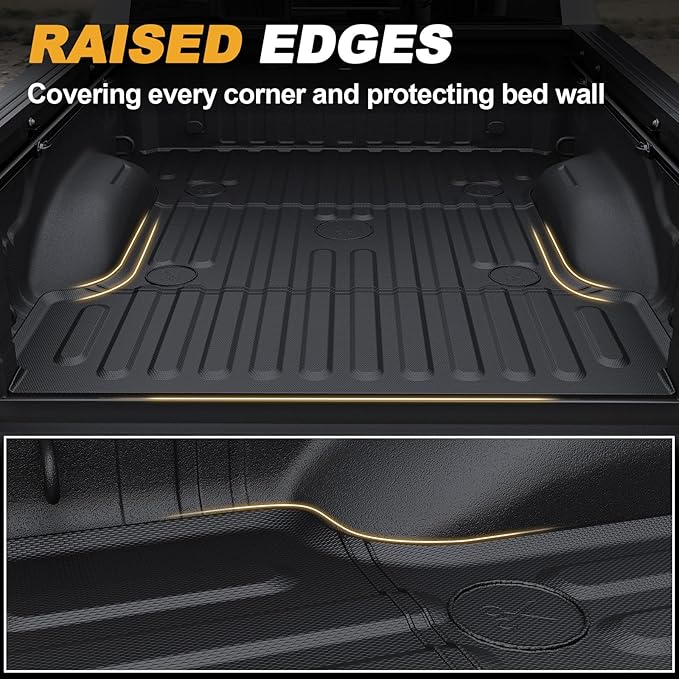 - Effective Anti-slip: 3D textured surface locks cargo in place during sharp turns or off-road driving, eliminating bed scratches. Reinforced raised edge ensures mat stability, eliminating slippage or displacement