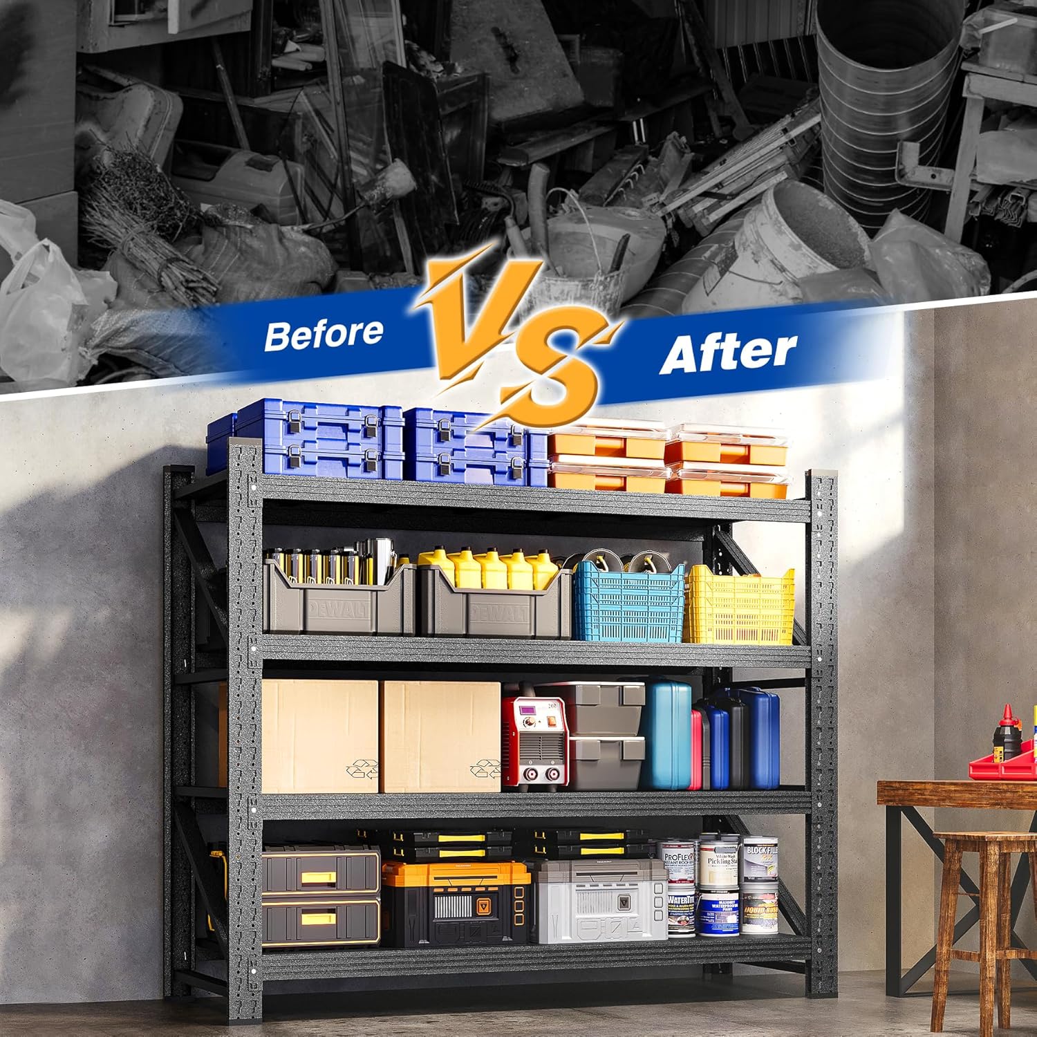 - Extra large product size: The heavy-duty Shelving are 48"W x 24"D x 69"H, and have been widened and upgraded horizontally. They have an extra-large width of 48 inches, which can store more items and are suitable for more usage scenarios, such as garages, factories and warehouses, etc.