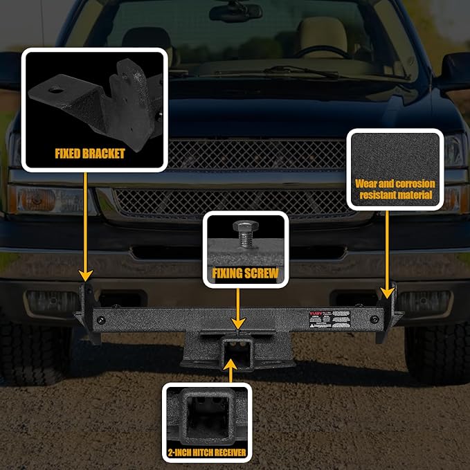 - 【Compatiblity】 Steel trailer hitch/2” hitch receiver compatible with: Chevrolet Silverado, Suburban, GMC Sierra, Yukon XL, Fascia Trimming