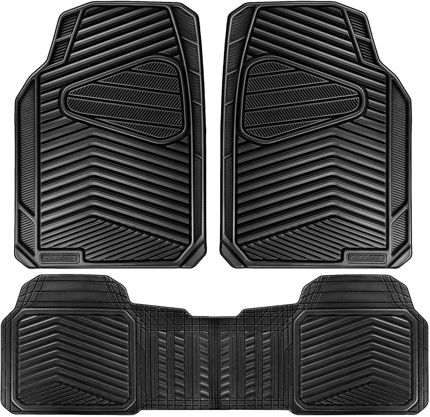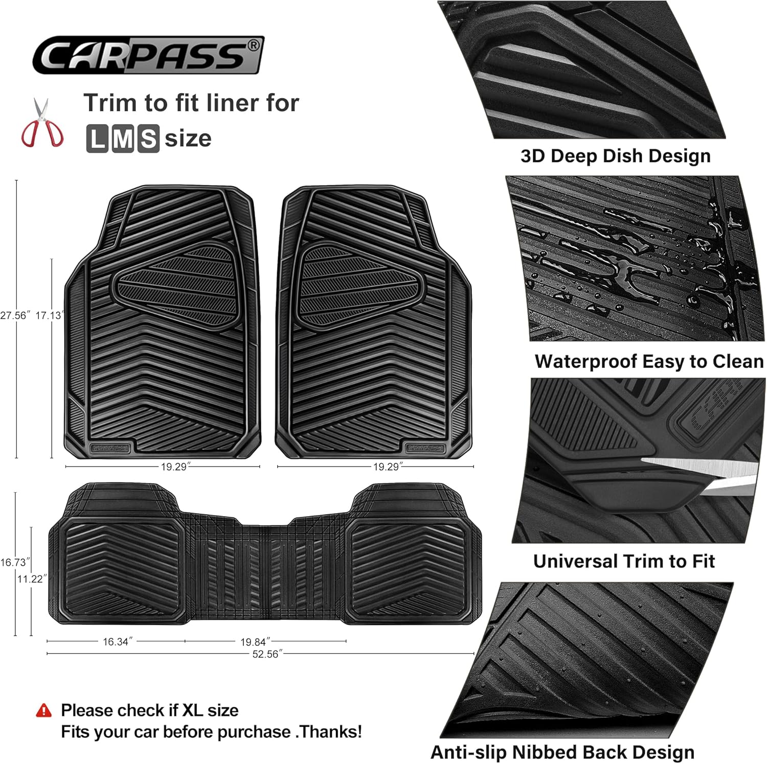CAR PASS Rubber Car Mats,Car Floor Mats All Weather,Car Mat Full Set 3 Piece,Waterproof Automotive Floor Mat Trim to Fit for Cars Sedans SUVs Small Trucks,Heavy Duty Anti-Slip Easy Clean, All Black