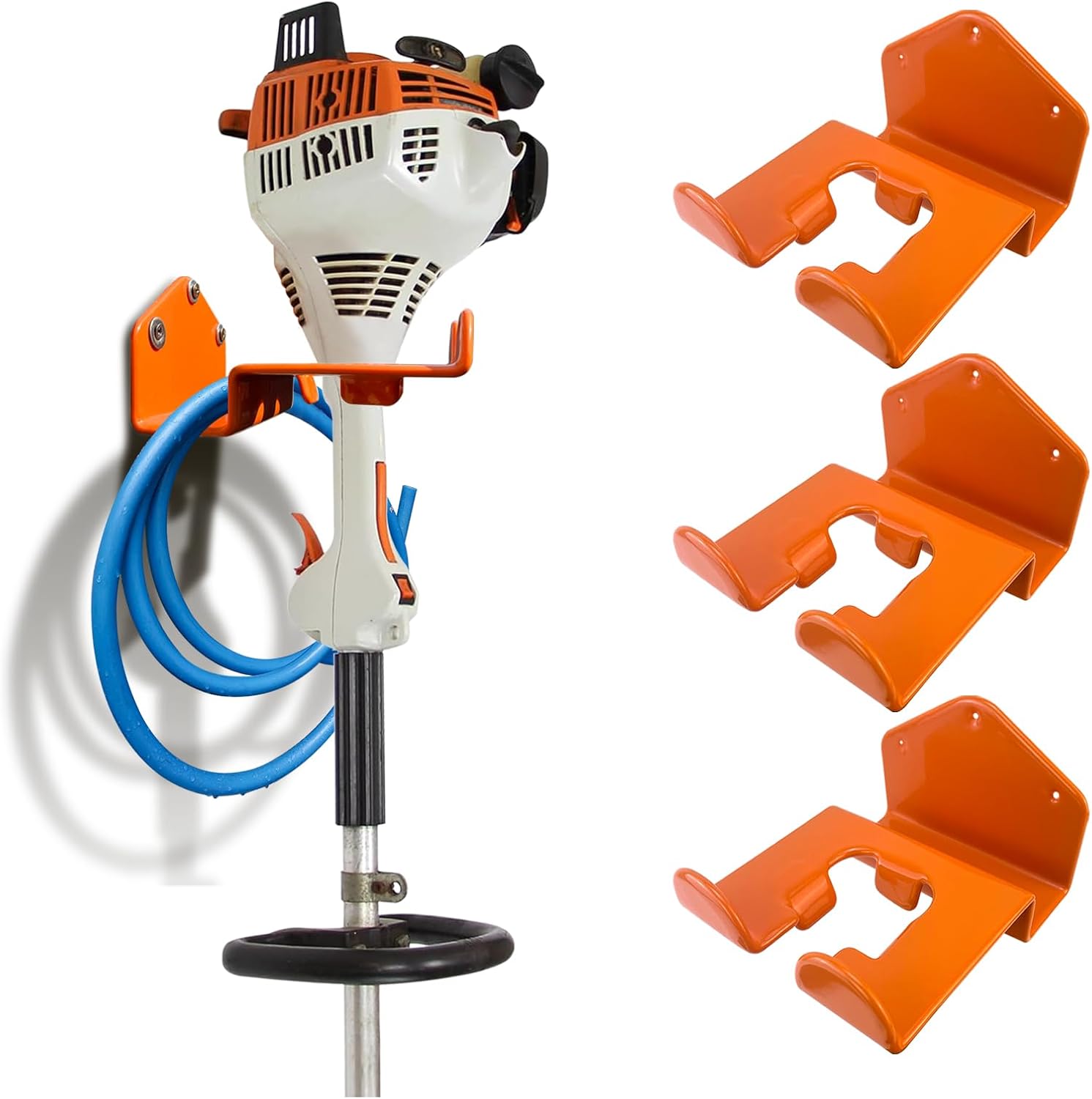 - Tool Holder for Multiuse: Heavy Duty Hangers Wall Mounted Grass Trimmer Rack sturdy and stand wear and tear,This is an excellent garage storage solutions,Install it,it can hold up to various tools in your garage or yard. Like garden power tool and hedge trimmer.