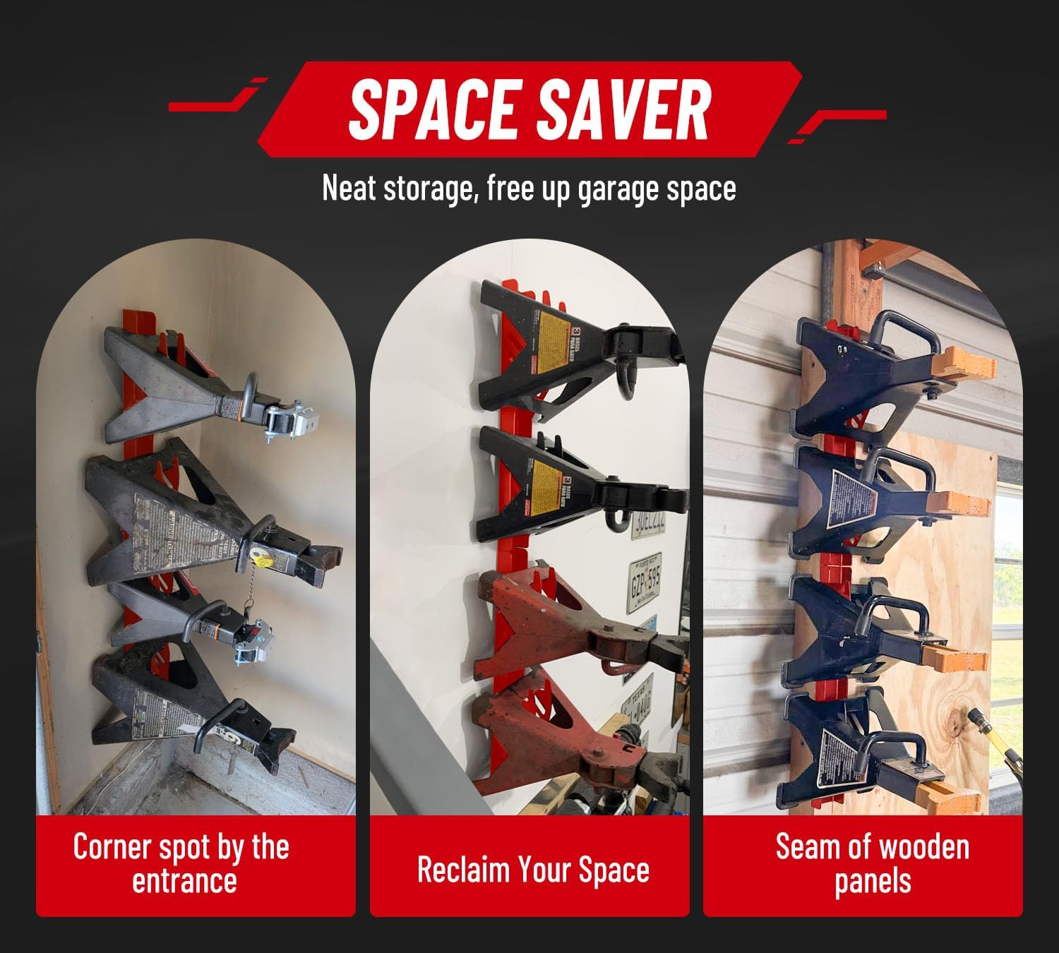 Jack Stand Wall Mount Organizer: Jack Stands Holder Storage Rack Mount - Fit for 2 & 3 Ton Jack Stand (2 Pack - Red)