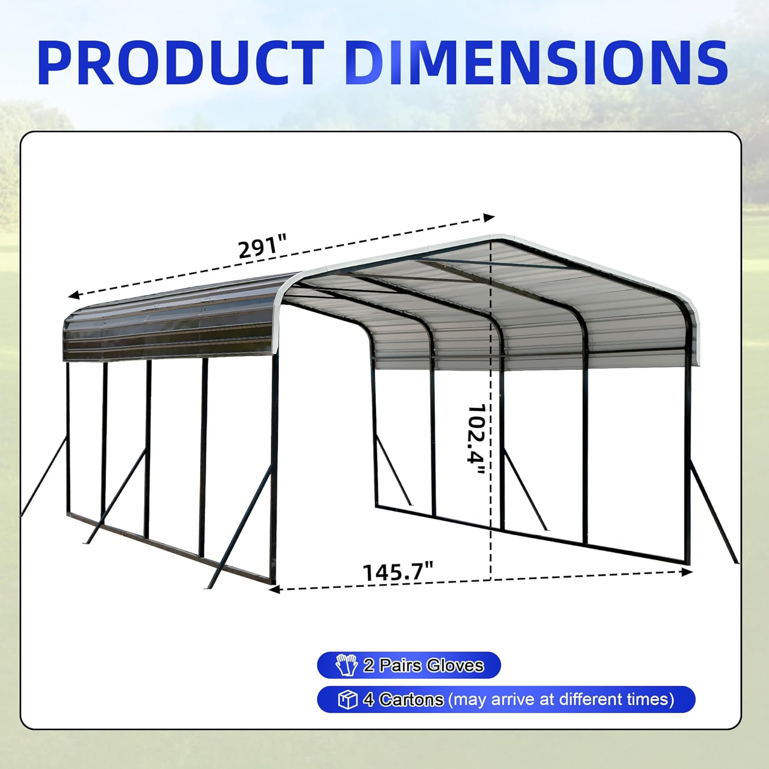 - VARIOUS OVERSIZED SIZES: Carport L x W x H: 145.7x 102.4 x 291inch to park any boat, car, tractor and farm equipment. Meet your storage needs!