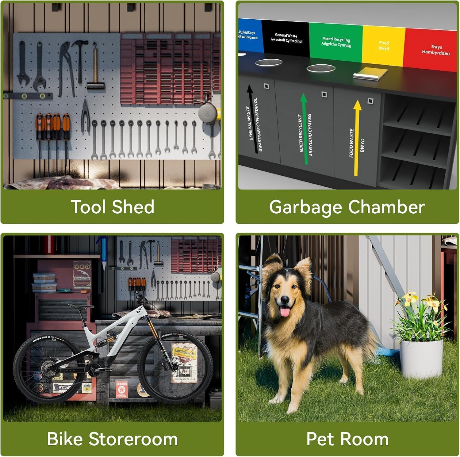 - Easy Installation:The tool sheds is equipped with part number labels on all components,accompanied by a comprehensive step-by-step manual and installation gloves.Please note that the assembly process may necessitate the assistance of 2-3 individuals