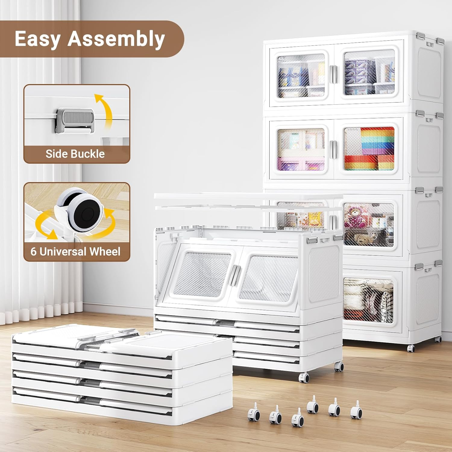 - 【Collapsible & Tool-Free Assembly】The V80 super large storage bins with lid and wheels feature a stackable & foldable design—simply collapse all four sides into a flat panel for easy store when not in use. No tools required—assembles quickly and hassle-free setup.