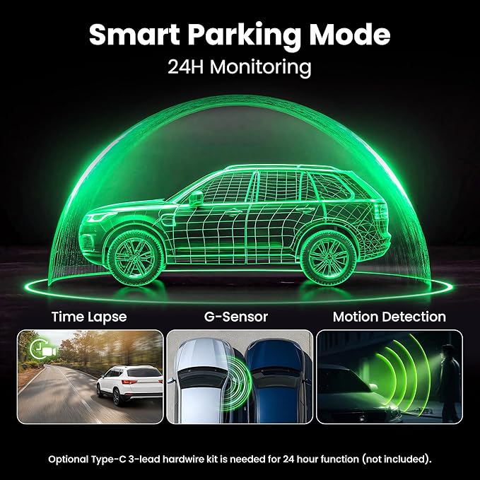 - Ultimate Road Safety: Capture every detail with our 4K dash cam front and rear; Equipped with high-performance sensors for stunning clarity; Provides 24/7 recording capability (hardwire kit required); Perfect for all driving conditions; Like having a trusted co-pilot with eyes always on the road