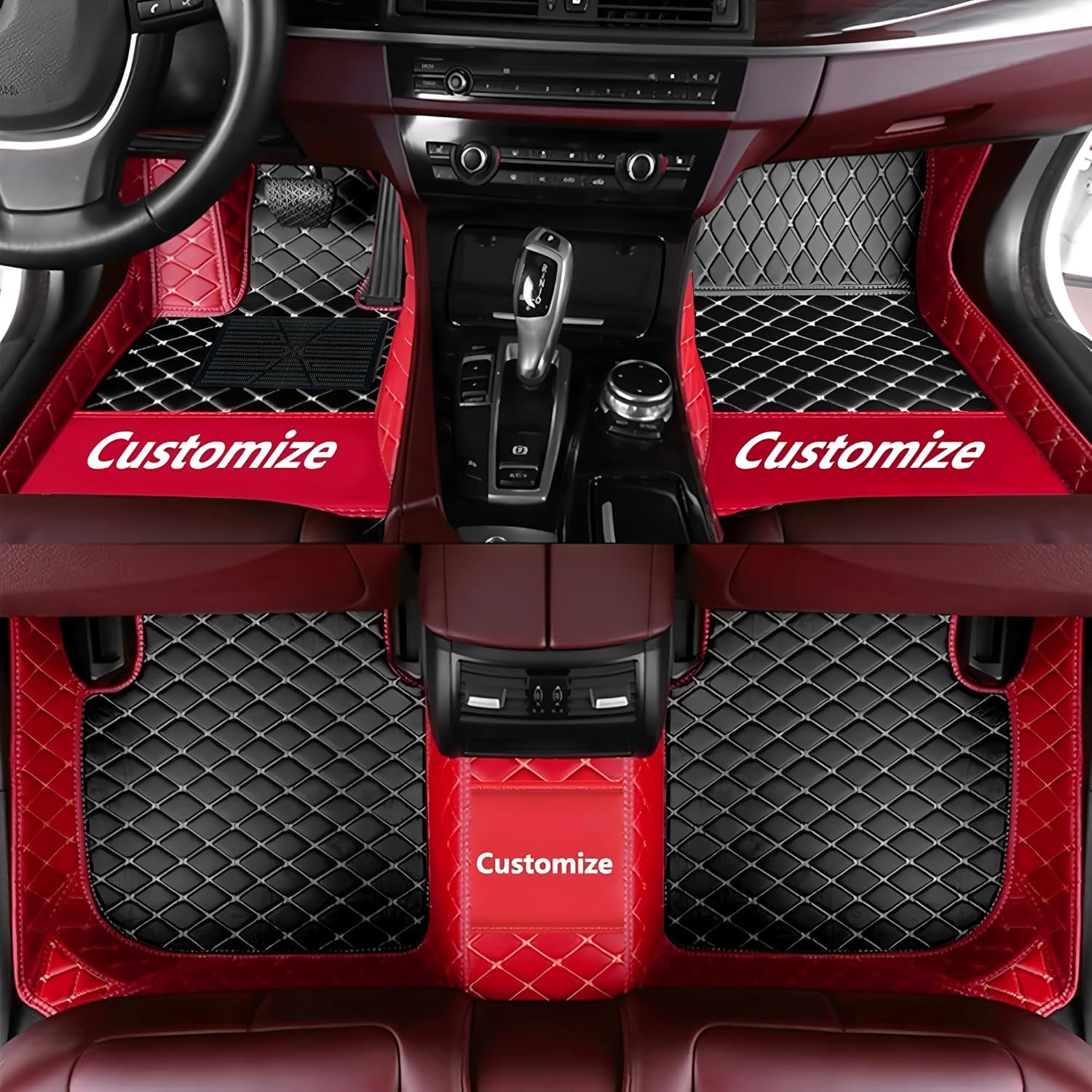 Custom Personalized Floor Mats for Cars,Luxury Full Coverage All Car Floor Mats,Anti-Slip Leather Car Mat Set ,Custom Floor Mats for 99% of Cars, Trucks & SUVs. (Red and Black)