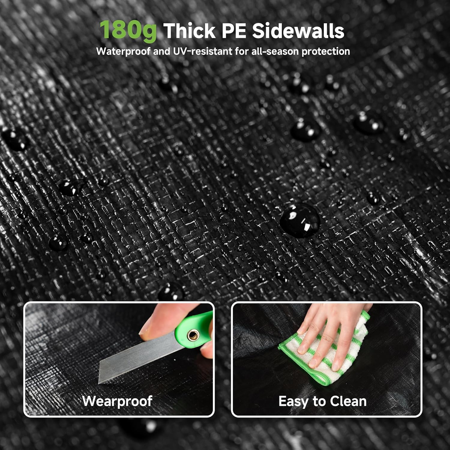 - 180g PE Removable Sidewalls: Wear-resistant and tear-resistant, offering excellent waterproof and dustproof performance, stand up to rain and snow, quick to install, remove and easy clean, all-weather protection for your carport