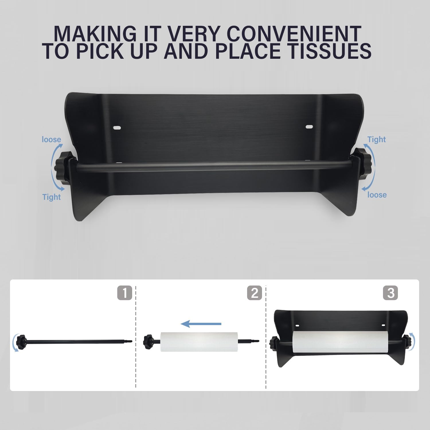 - 【Practical Design】 The store towel holder has an open design, it is very convenient to reach and place paper towels, the left and right end nuts are easy to release and fix it