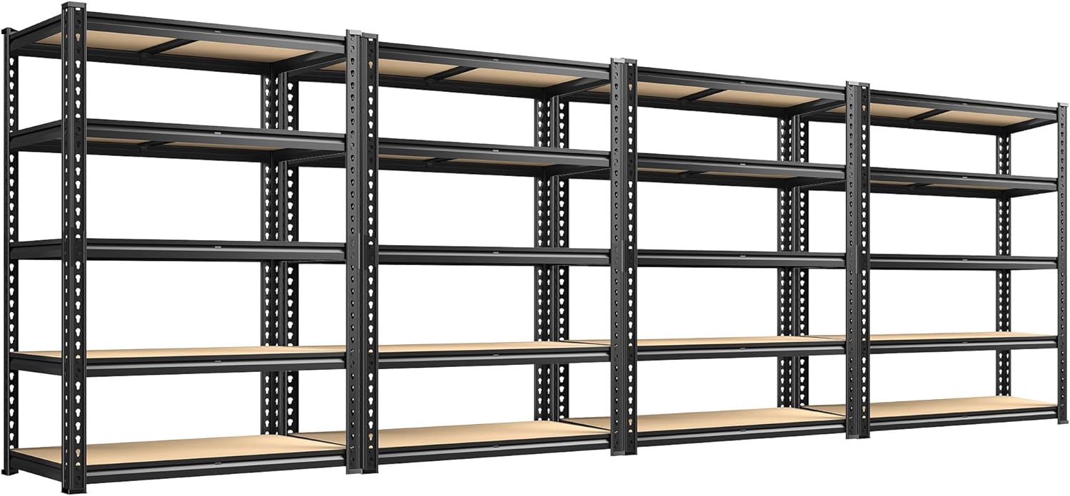 72.12" H Garage Shelving, Storage Shelves Load 2100LBS, 5-Tier Adjustable Shelving Unit with Thickened Wooden Boards for Multiple Scenarios, 72.12" H x 35.55" W x 11.85" D, Black, 4 Pack