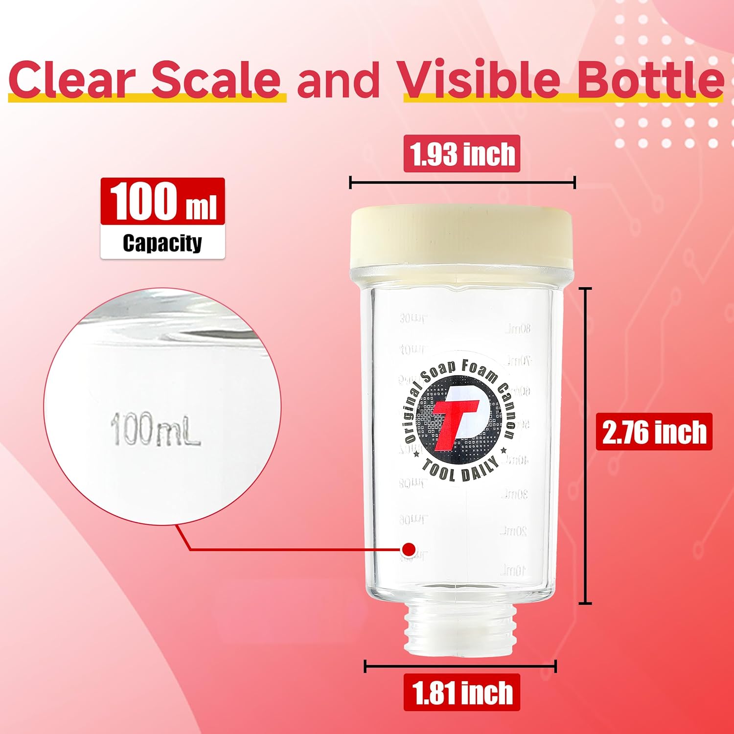 - INNOVATIVE DESIGN: The pressure washer foam cannon is designed for ultimate convenience. Simply add your favorite car wash soap directly into the bottle - no need to dilute it with water. This novel design simplifies the cleaning process, saving you time and effort. Plus, you don’t need to worry about achieving the right soap concentration; the undiluted soap produces thicker, richer foam, ensuring a more effective car washing