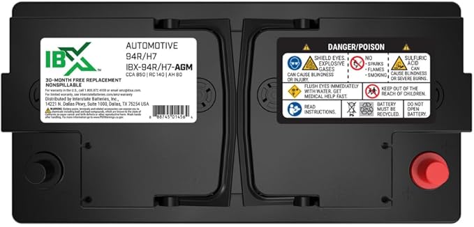 Interstate Batteries IBX Automotive Battery 12V 80Ah (Group Size H7, 94R) 850CCA SLI AGM Auto Replacement Battery for Cars, SUVs, Sedans, Trucks (IBX-94R/H7-AGM)