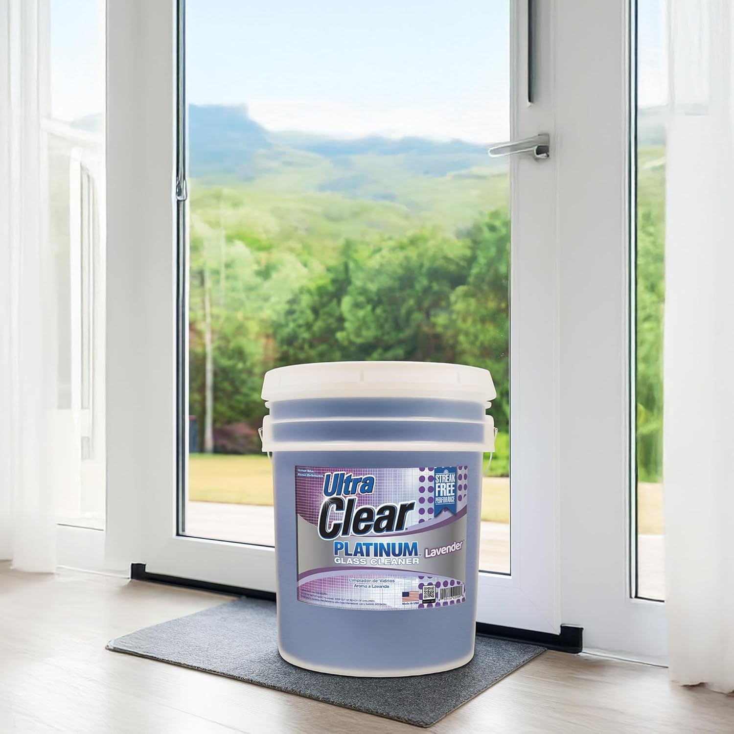 Ultra Clear Platinum Glass Cleaner, Crystal Clear Streak-Free Shine Polished Finish, for Commercial and Residential Use Lavender Fresh, 5 Gallons