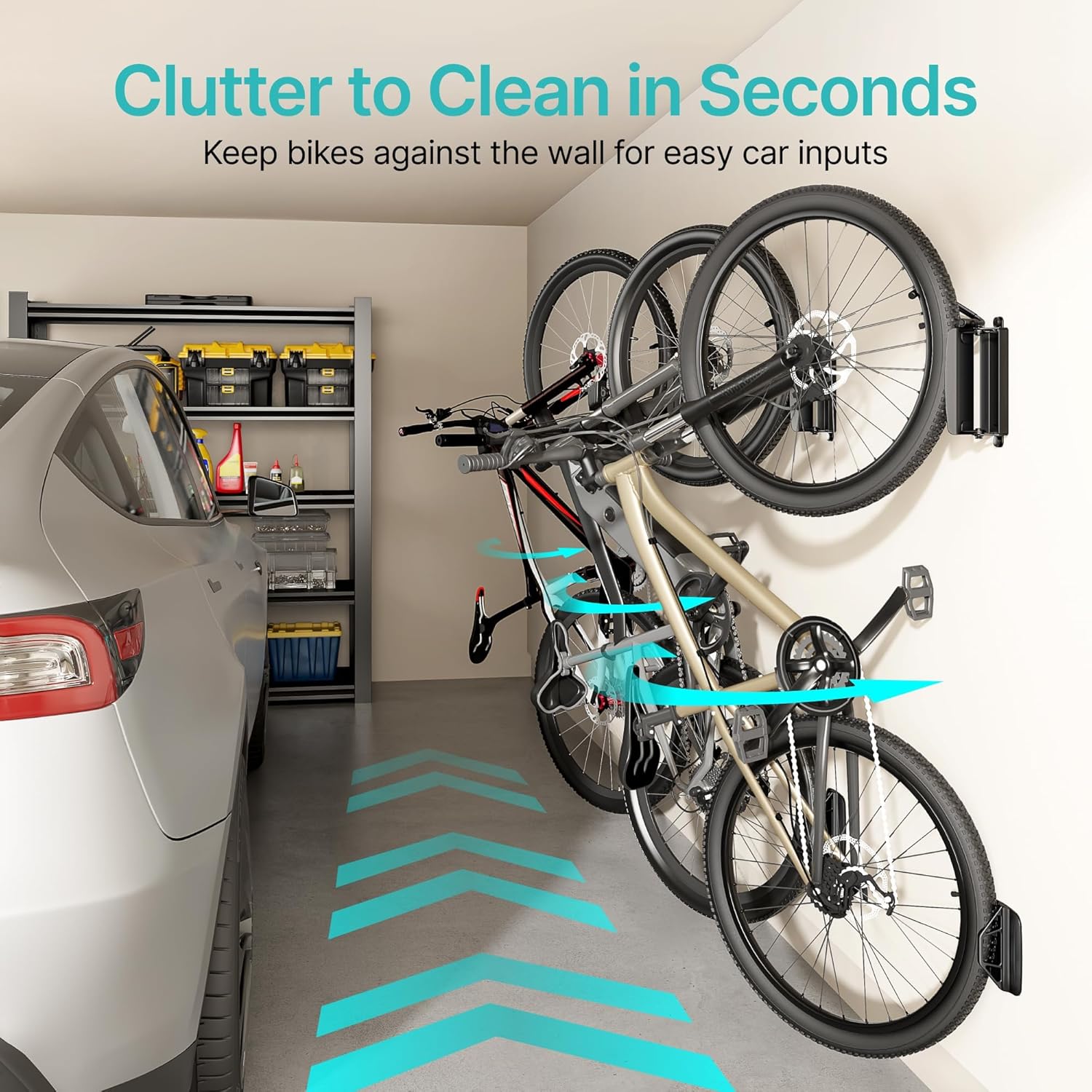 - 【Check Size】The moment you mount your bike on this garage bike mount, everything feels more organized. It accommodates mountain bikes, electric bikes, road bikes, hybrid bikes, city bikes, and even kids' bikes. Just ensure your tire height is under 3.15 inches and the width is less than 3.5 inches. Instantly, the bike rack wall mount transforms your entryway into a tidy, welcoming space where your bike is always within easy reach.