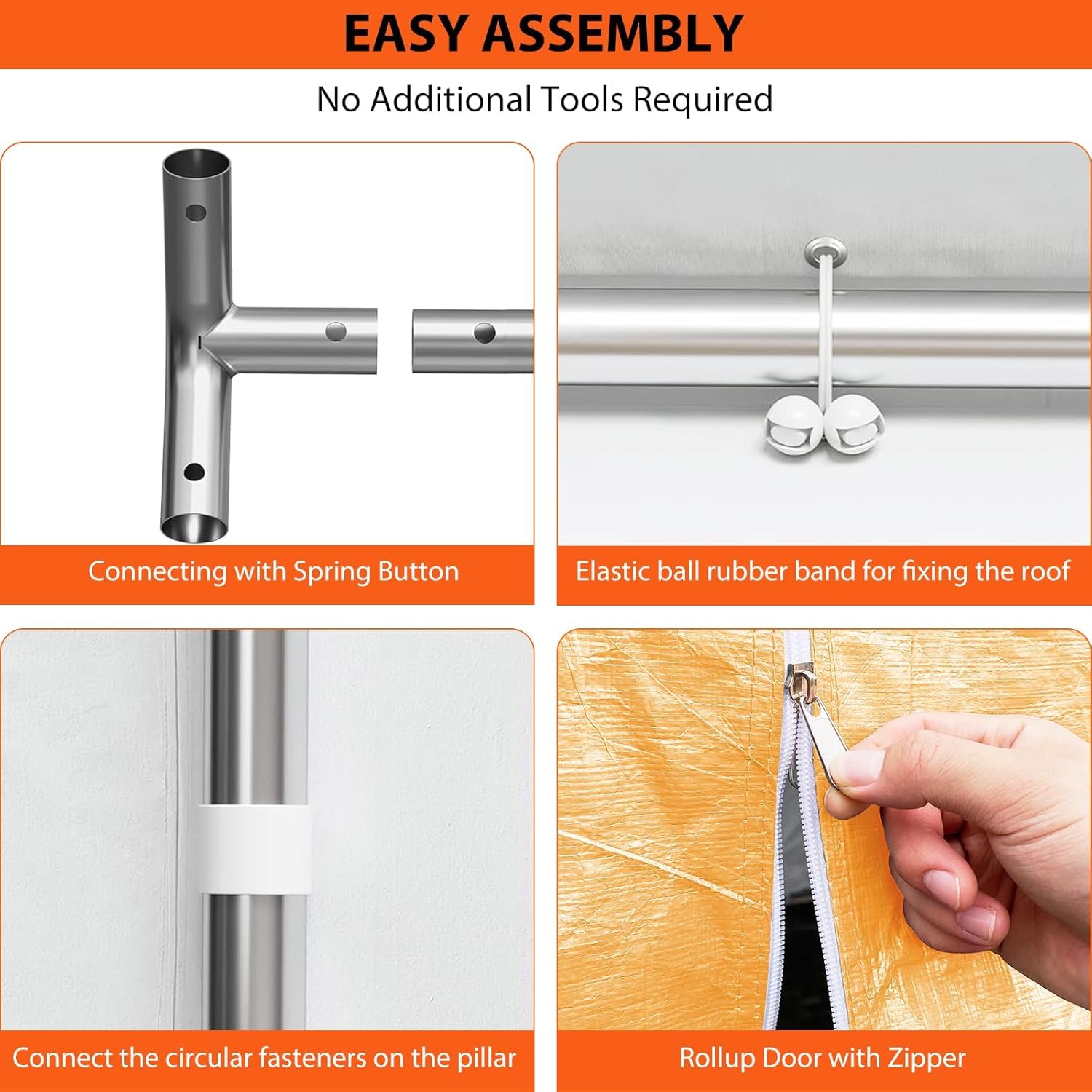 - TOOL FREE ASSEMBLY: Snap together your outdoor oversized carport effortlessly with smart spring-button connectors and circular pillar fasteners, no extra tools needed! Elastic ball rubber band lock the roof securely while you relax