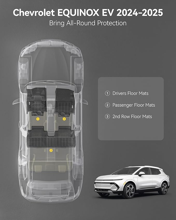 - PERFECT FIT FOR 2024-2025 CHEVY EQUINOX EV: Custom fit design edge to edge for maximum coverage and protection with TPE (thermoplastic elastomer) material which ensures your more strength, resilience, durability and elasticity, these floor mats are matchable with chevy equinox EV.
