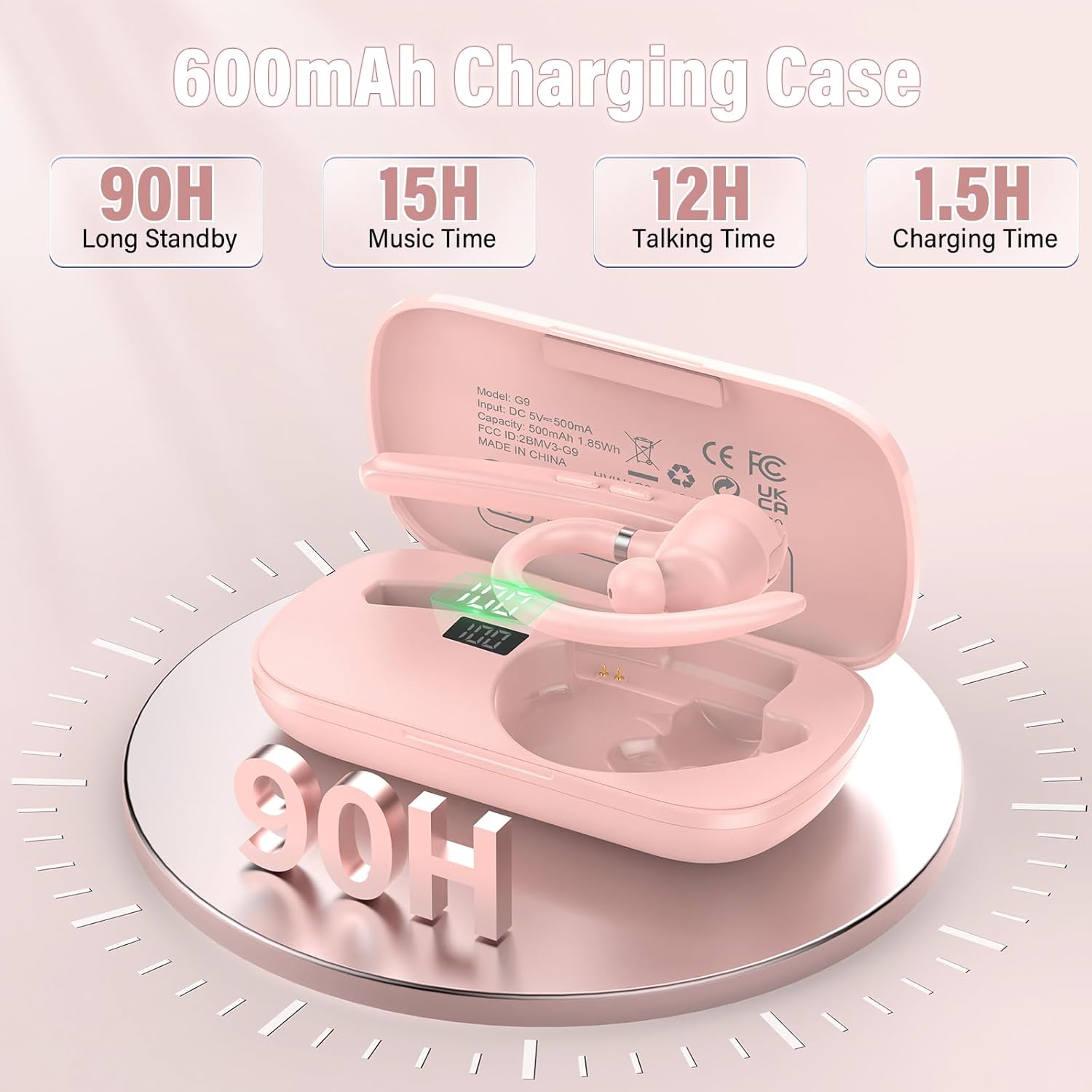 - 90Hrs Marathon Battery & Dual Charging: G9 Hands free noise canceling headphones features a smart LED display, delivering 15hrs nonstop music/12hrs talk time on a 1.5hr charge (via USB-C ports on both earpiece and charging case), plus 90hrs standby – triple the runtime of standard wireless headsets. Built for endurance: this Bluetooth earpiece for iOS, Android, cell phones, laptops powers through long-haul drives, office tasks, and weekend errands – all without battery anxiety.