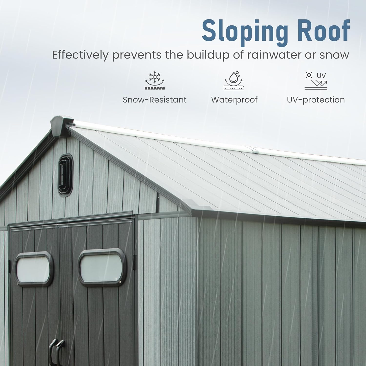 Domi 8x12 FT Outdoor Resin Storage Shed, All-Weather Double-Wall Storage Building for Backyard, Garden, Lawn Tools, Mower, Bike & Pool Equipment, Lockable Doors, Ventilated Roof, Grey