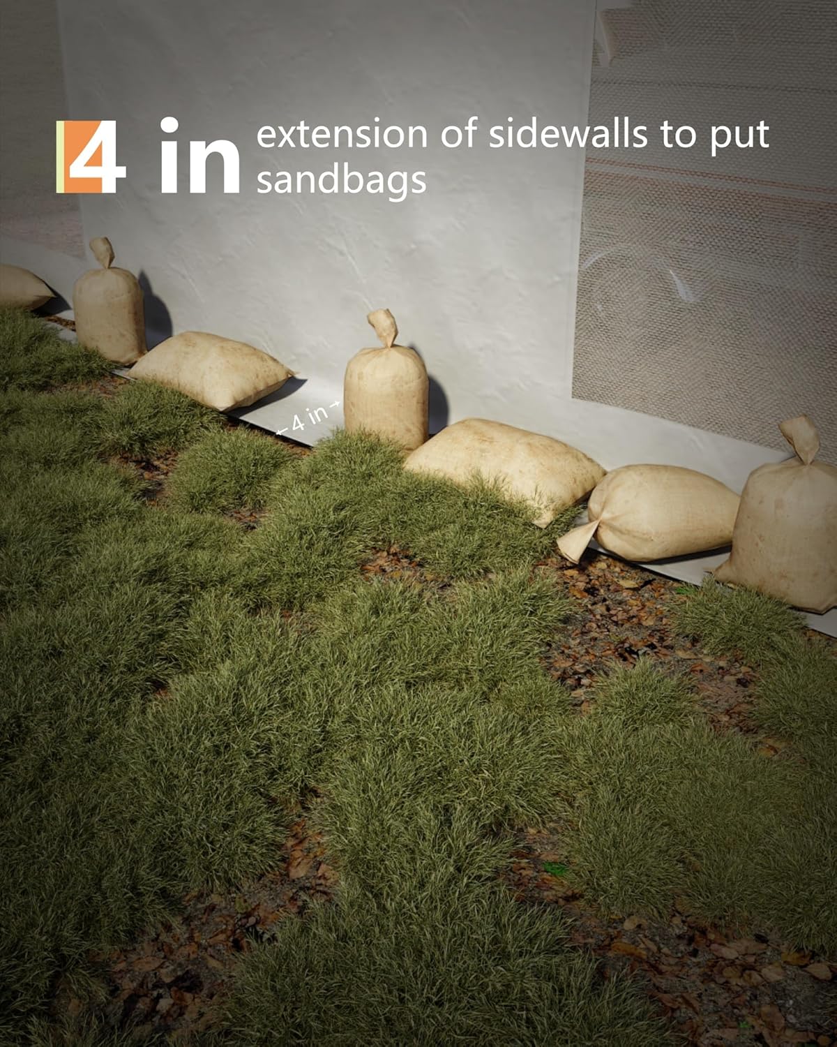 - [Warning] Max wind-resistant level Beaufort 7; Carport must be placed on flat ground and must be secured with the ground pegs, guylines, and anchors; When used in windy areas, please add more counterweight such as concrete, sandbags, or steel rope; When used in the winter, must clean the snow(no more than 4 inch) on the roof in case collapse